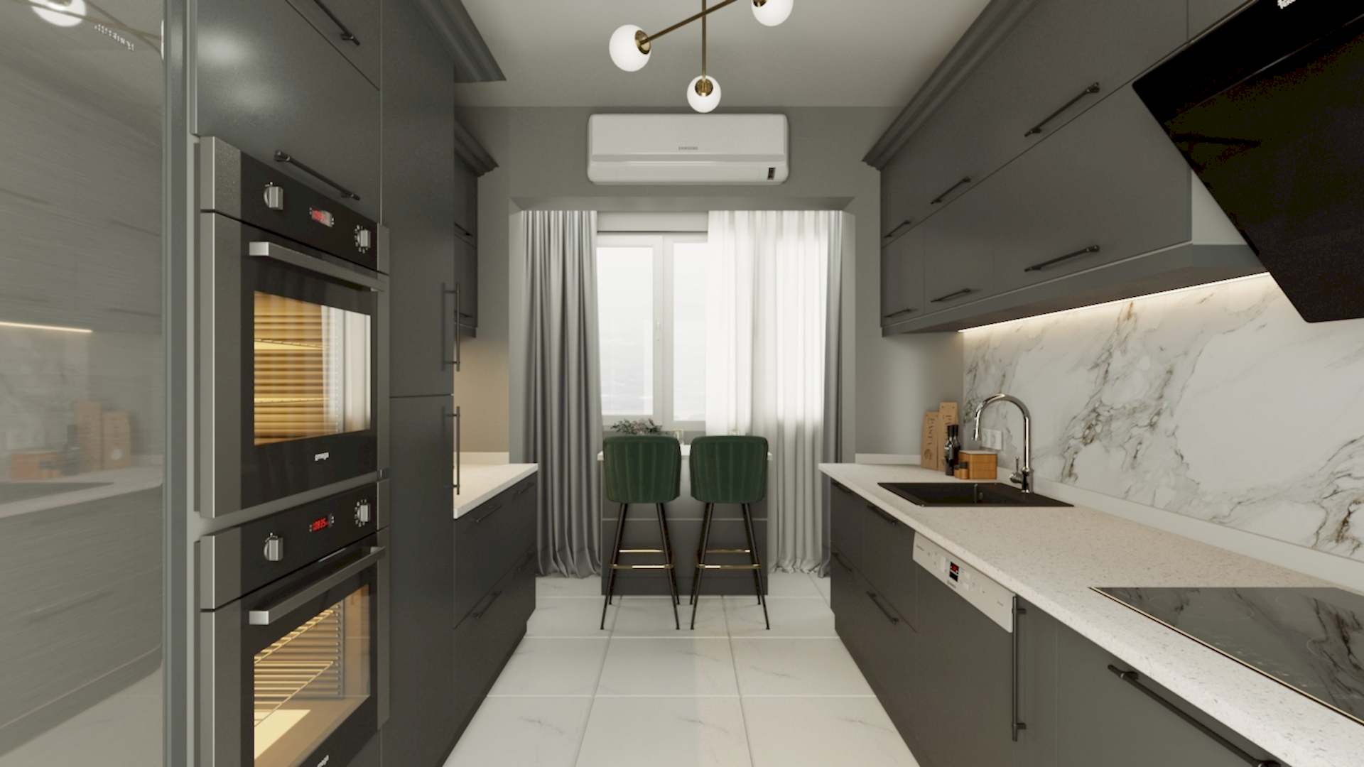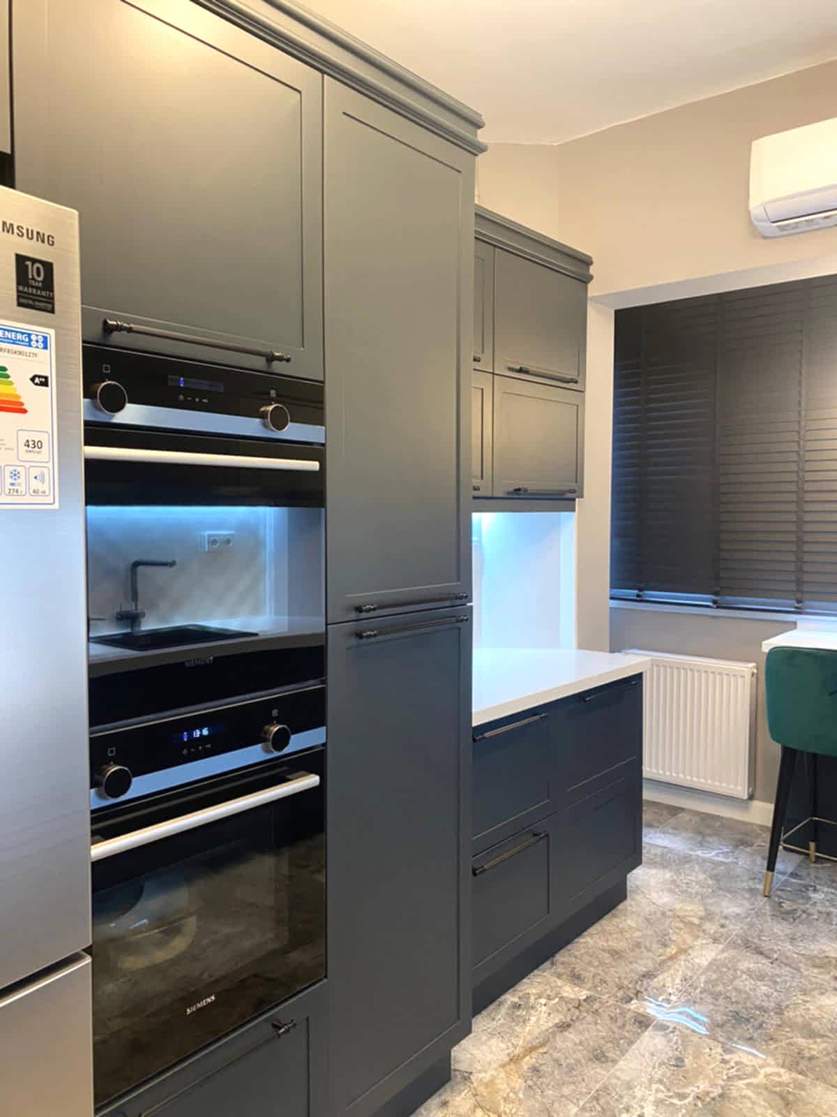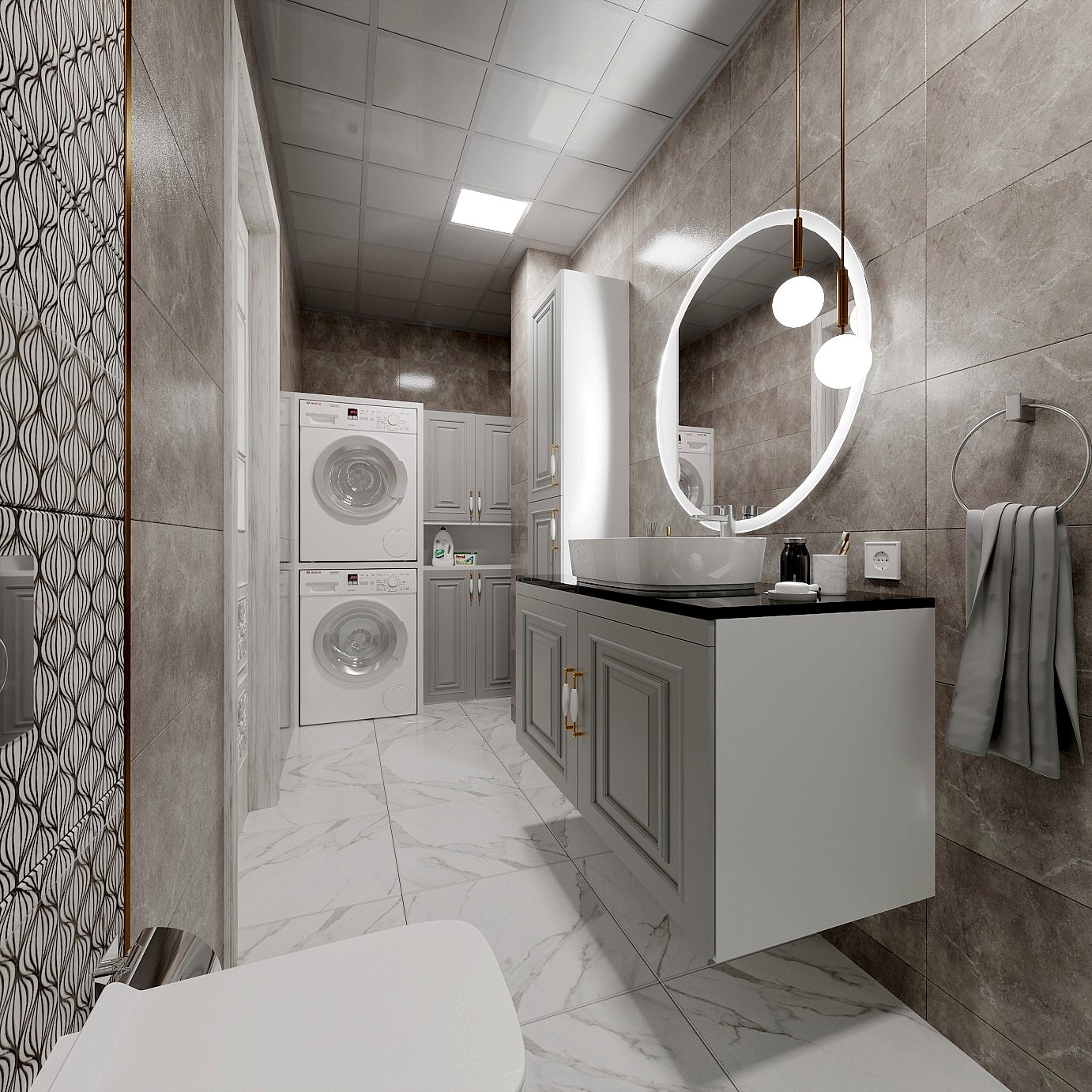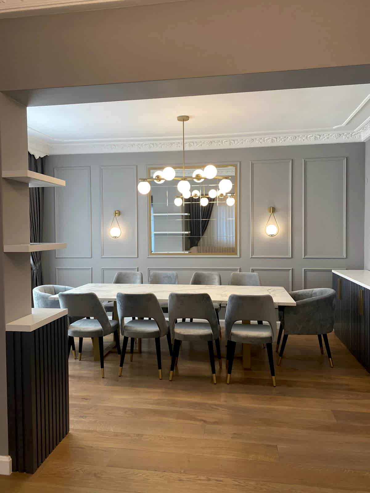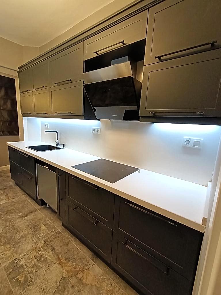 Göztepe Projesi, modern ve şık bir iç mekân tasarımının her detayıyla düşünülüp uygulandığı bir yaşam alanı olarak öne çıkıyor. Bu projede her odanın fonksiyonu ve estetiği, kullanıcı ihtiyaçlarına göre özelleştirilmiş ve tasarımda sadelikle şıklık bir arada buluşturulmuştur.Giriş alanında, mekâna sıcaklık ve derinlik katmak amacıyla çıtalama uygulaması yapıldı. Bu çıtalama, aynı zamanda özel olarak üretilen dolaplarla uyumlu bir tasarım dili oluşturdu. Ayrıca, dresuar üzerinde yapılan çıtalama çalışması, içerisine yerleştirilen ayna ile şık ve fonksiyonel bir öğe haline getirildi. Mekânın genel estetiğiyle uyumlu bir şekilde tasarlanmış bu detaylar, girişin ilk andan itibaren etkileyici olmasını sağladı.Salonda, hem yemek alanı hem de TV izleme alanı olarak iki farklı işlev bir arada düşünüldü. Bu iki alan, iç mekânın genel akışını bozmadan, zarif bir şekilde birbirinden ayrıldı. Ortada yer alan kolon, bir seperatör olarak görev aldı ve raf sistemi ile hem estetik hem de işlevsel bir çözüm sunuldu. TV ünitesinde yer alan niş, led aydınlatmalarla desteklendi ve elektrikli şömine alanı ile sıcak bir atmosfer yaratıldı. Yemek alanında, evin tüm tasarımına uyum sağlamak adına masa arkası duvarda çıtalama detayları kullanıldı. Aynı zamanda, bu alandaki tasarımın şıklığını artıran öğeler arasında ayna, duvar kağıdı ve aplikler yer aldı. Yemek masası arkasında ise, depolama alanı sağlayan ve tasarımla bütünleşen bir konsol tasarlandı. Hem estetik hem de fonksiyonel açıdan bu detaylar, alanın kullanımını kolaylaştırdı. Banyolarda, özellikle duşa girerken ve genel banyo atmosferinde, aydınlatma önemli bir rol oynadı. Karanlık banyo algısını yıkmak amacıyla, tavan sistemine entegre aydınlatmalar, duş içi led ışıklar ve aynanın etrafına yerleştirilen led aydınlatmalarla mekana ferah bir hava katıldı. Ayrıca, banyo tasarımında müşterinin tercihi doğrultusunda gold detaylar kullanılarak lüks ve zarif bir dokunuş eklendi. Duş alanında kullanılan farklı seramikler ve niş tasarımları, banyoya modern bir görünüm kazandırdı. Ebeveyn odasında, diğer alanlarla uyum içinde bir tasarım ortaya çıktı. Yatak başında yapılan çıtalama uygulaması, odanın genel tasarım dilini destekledi ve mekana sofistike bir hava kattı. Komodinlerin üzerindeki sarkıt aydınlatmalar, odanın atmosferini tamamladı. Ayrıca, müşterinin isteği doğrultusunda özel olarak tasarlanan dilim yatak başı, odadaki detayları kusursuz bir şekilde tamamladı.Mutfak, sadece yemek pişirilen bir alan olmanın ötesine geçerek, sosyal yaşam alanı olarak da kullanıma uygun hale getirildi. Ufak yemek molaları verebileceğiniz ve küçük yemeklerinizi hazırlayabileceğiniz alanlar yaratıldı. Boy dolap depolama sistemleri ise mutfakta işlevselliği arttırarak, kullanım kolaylığı sağladı. Göztepe Projesi, her alanı detaylıca düşünülüp tasarlanarak, her odanın işlevselliğini maksimize eden bir iç mekan çözümü sundu. Mekanın her köşesi, hem estetik hem de fonksiyonel açıdan mükemmel bir dengeyle tasarlandı.
