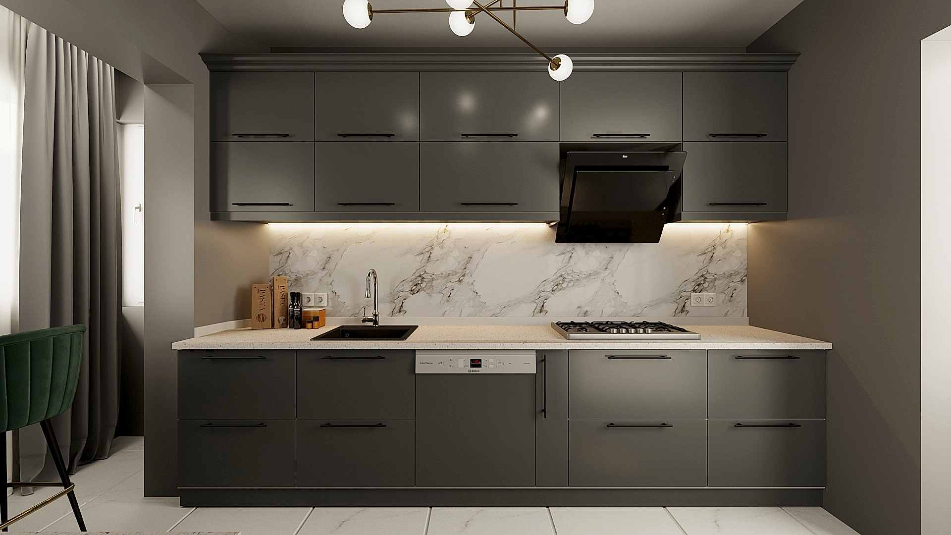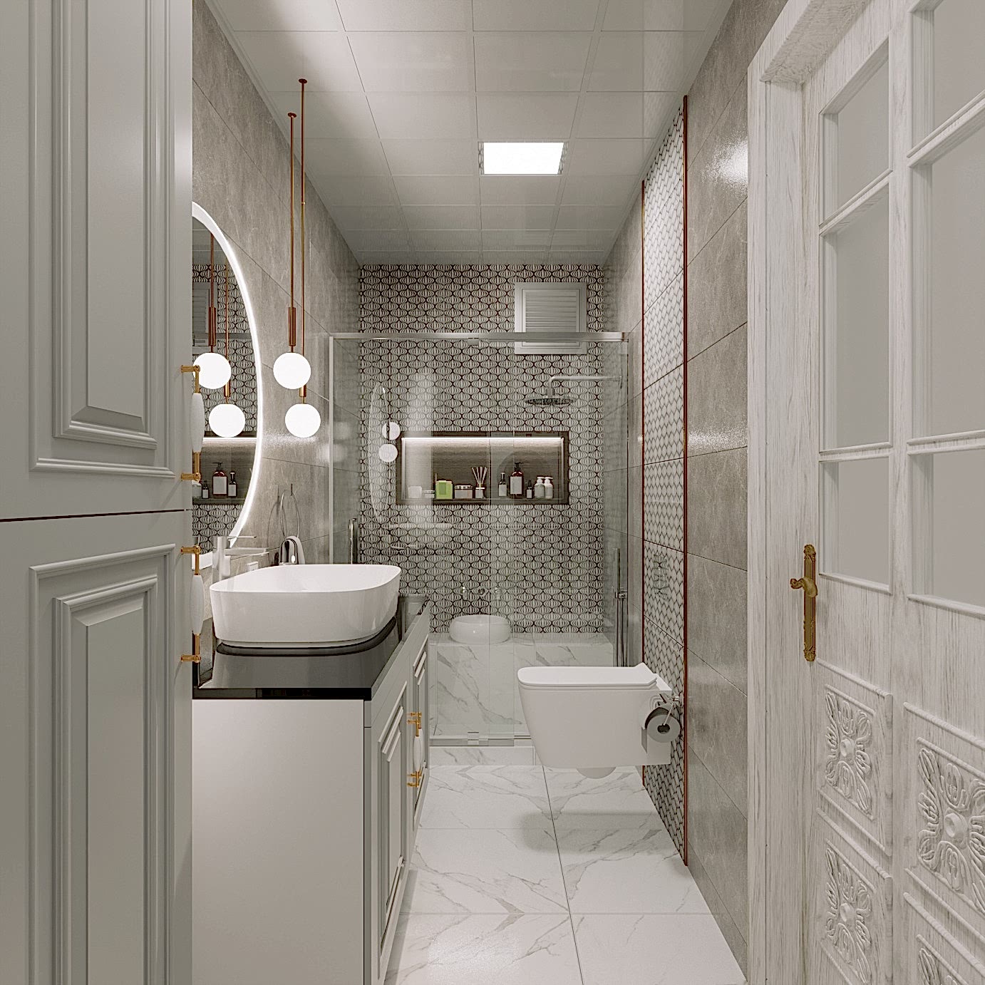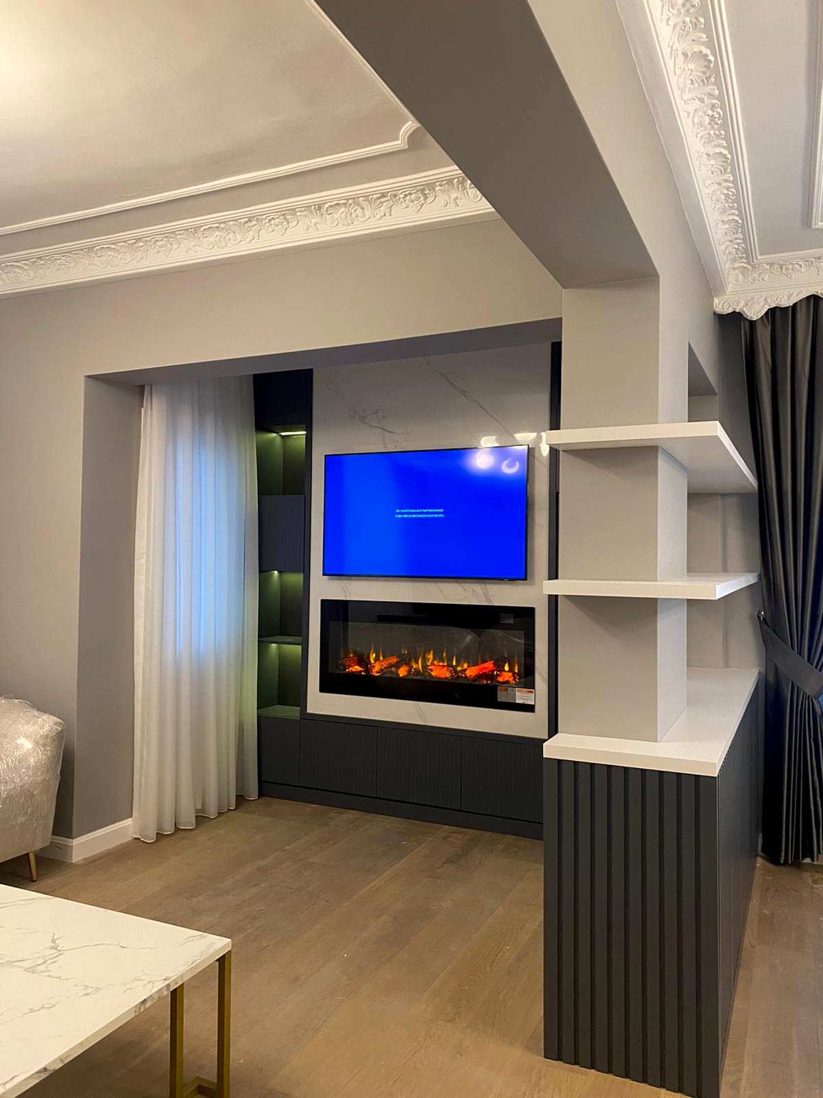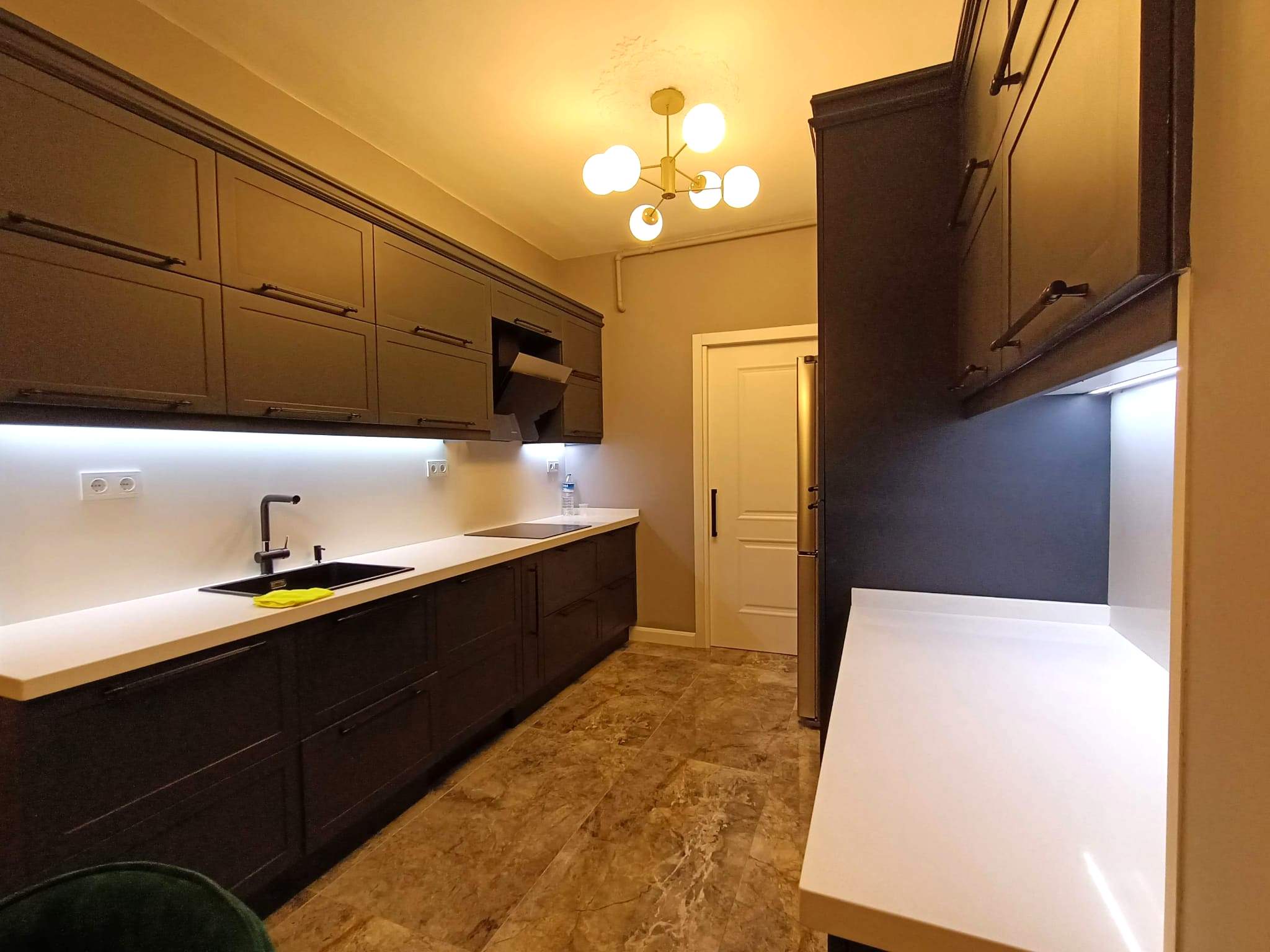 Göztepe Projesi, modern ve şık bir iç mekân tasarımının her detayıyla düşünülüp uygulandığı bir yaşam alanı olarak öne çıkıyor. Bu projede her odanın fonksiyonu ve estetiği, kullanıcı ihtiyaçlarına göre özelleştirilmiş ve tasarımda sadelikle şıklık bir arada buluşturulmuştur.Giriş alanında, mekâna sıcaklık ve derinlik katmak amacıyla çıtalama uygulaması yapıldı. Bu çıtalama, aynı zamanda özel olarak üretilen dolaplarla uyumlu bir tasarım dili oluşturdu. Ayrıca, dresuar üzerinde yapılan çıtalama çalışması, içerisine yerleştirilen ayna ile şık ve fonksiyonel bir öğe haline getirildi. Mekânın genel estetiğiyle uyumlu bir şekilde tasarlanmış bu detaylar, girişin ilk andan itibaren etkileyici olmasını sağladı.Salonda, hem yemek alanı hem de TV izleme alanı olarak iki farklı işlev bir arada düşünüldü. Bu iki alan, iç mekânın genel akışını bozmadan, zarif bir şekilde birbirinden ayrıldı. Ortada yer alan kolon, bir seperatör olarak görev aldı ve raf sistemi ile hem estetik hem de işlevsel bir çözüm sunuldu. TV ünitesinde yer alan niş, led aydınlatmalarla desteklendi ve elektrikli şömine alanı ile sıcak bir atmosfer yaratıldı. Yemek alanında, evin tüm tasarımına uyum sağlamak adına masa arkası duvarda çıtalama detayları kullanıldı. Aynı zamanda, bu alandaki tasarımın şıklığını artıran öğeler arasında ayna, duvar kağıdı ve aplikler yer aldı. Yemek masası arkasında ise, depolama alanı sağlayan ve tasarımla bütünleşen bir konsol tasarlandı. Hem estetik hem de fonksiyonel açıdan bu detaylar, alanın kullanımını kolaylaştırdı. Banyolarda, özellikle duşa girerken ve genel banyo atmosferinde, aydınlatma önemli bir rol oynadı. Karanlık banyo algısını yıkmak amacıyla, tavan sistemine entegre aydınlatmalar, duş içi led ışıklar ve aynanın etrafına yerleştirilen led aydınlatmalarla mekana ferah bir hava katıldı. Ayrıca, banyo tasarımında müşterinin tercihi doğrultusunda gold detaylar kullanılarak lüks ve zarif bir dokunuş eklendi. Duş alanında kullanılan farklı seramikler ve niş tasarımları, banyoya modern bir görünüm kazandırdı. Ebeveyn odasında, diğer alanlarla uyum içinde bir tasarım ortaya çıktı. Yatak başında yapılan çıtalama uygulaması, odanın genel tasarım dilini destekledi ve mekana sofistike bir hava kattı. Komodinlerin üzerindeki sarkıt aydınlatmalar, odanın atmosferini tamamladı. Ayrıca, müşterinin isteği doğrultusunda özel olarak tasarlanan dilim yatak başı, odadaki detayları kusursuz bir şekilde tamamladı.Mutfak, sadece yemek pişirilen bir alan olmanın ötesine geçerek, sosyal yaşam alanı olarak da kullanıma uygun hale getirildi. Ufak yemek molaları verebileceğiniz ve küçük yemeklerinizi hazırlayabileceğiniz alanlar yaratıldı. Boy dolap depolama sistemleri ise mutfakta işlevselliği arttırarak, kullanım kolaylığı sağladı. Göztepe Projesi, her alanı detaylıca düşünülüp tasarlanarak, her odanın işlevselliğini maksimize eden bir iç mekan çözümü sundu. Mekanın her köşesi, hem estetik hem de fonksiyonel açıdan mükemmel bir dengeyle tasarlandı.