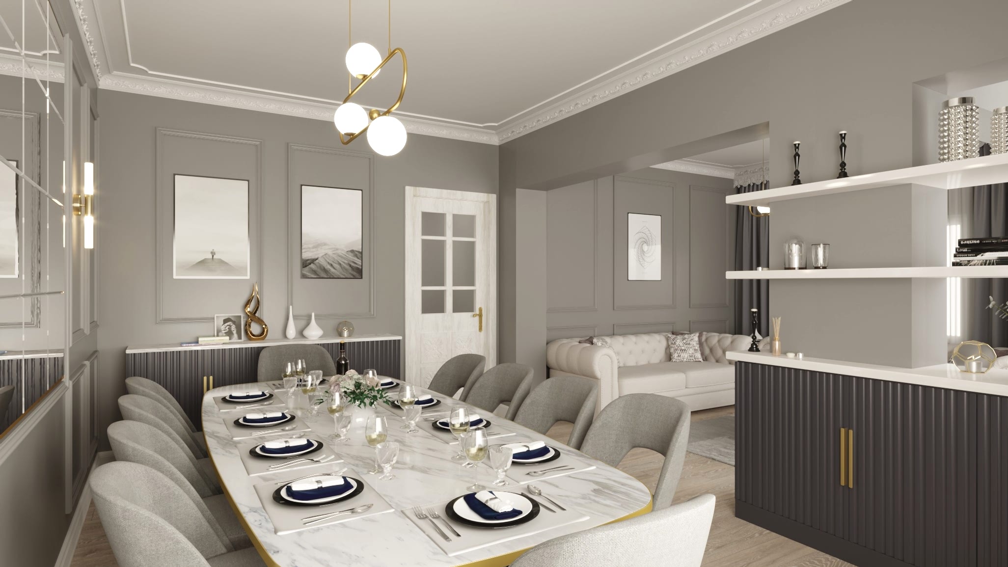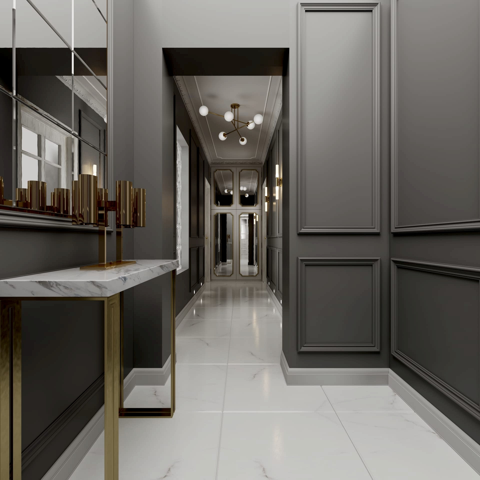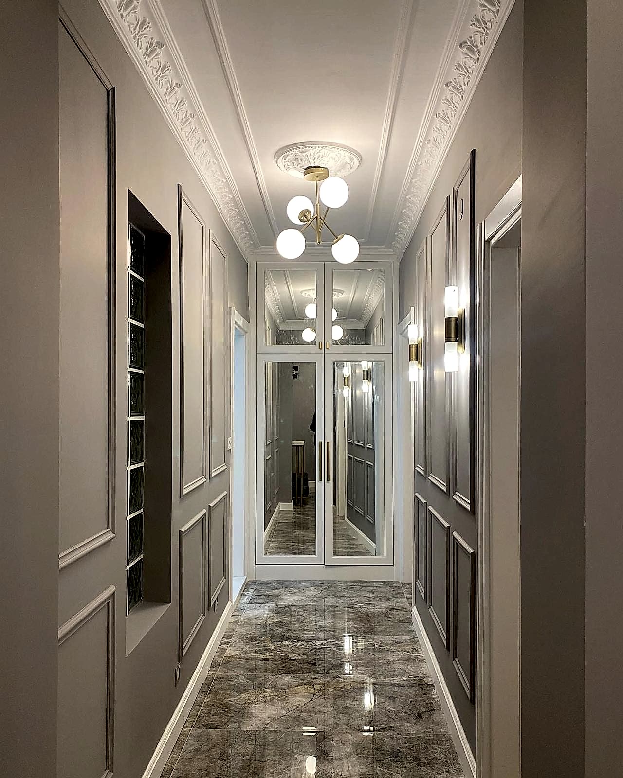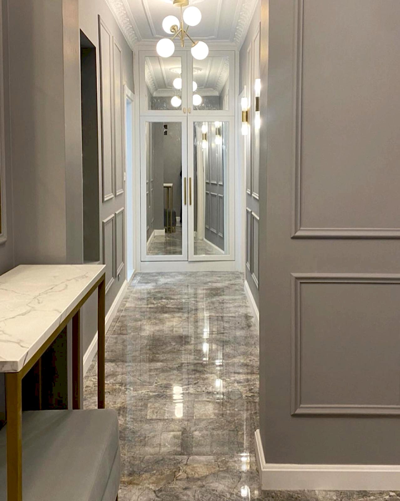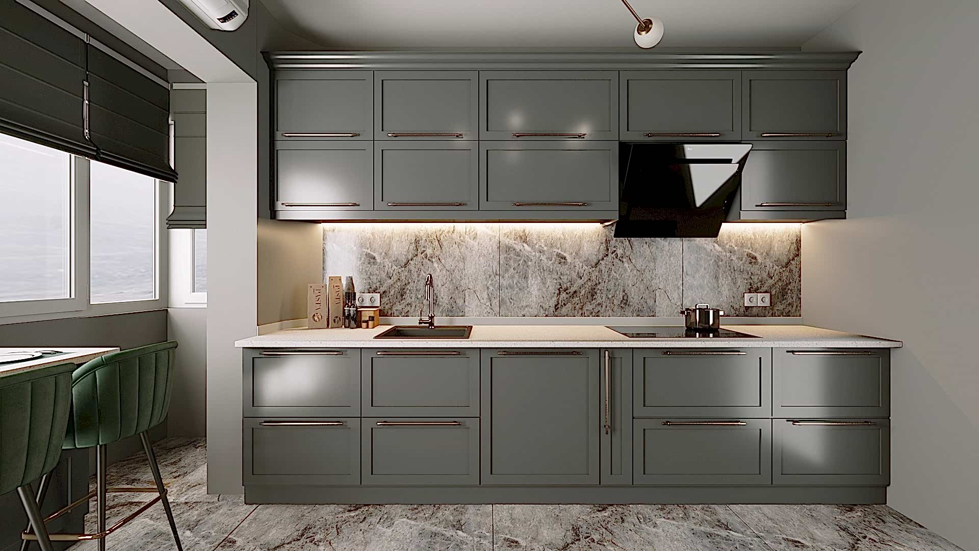 Göztepe Projesi, modern ve şık bir iç mekân tasarımının her detayıyla düşünülüp uygulandığı bir yaşam alanı olarak öne çıkıyor. Bu projede her odanın fonksiyonu ve estetiği, kullanıcı ihtiyaçlarına göre özelleştirilmiş ve tasarımda sadelikle şıklık bir arada buluşturulmuştur.Giriş alanında, mekâna sıcaklık ve derinlik katmak amacıyla çıtalama uygulaması yapıldı. Bu çıtalama, aynı zamanda özel olarak üretilen dolaplarla uyumlu bir tasarım dili oluşturdu. Ayrıca, dresuar üzerinde yapılan çıtalama çalışması, içerisine yerleştirilen ayna ile şık ve fonksiyonel bir öğe haline getirildi. Mekânın genel estetiğiyle uyumlu bir şekilde tasarlanmış bu detaylar, girişin ilk andan itibaren etkileyici olmasını sağladı.Salonda, hem yemek alanı hem de TV izleme alanı olarak iki farklı işlev bir arada düşünüldü. Bu iki alan, iç mekânın genel akışını bozmadan, zarif bir şekilde birbirinden ayrıldı. Ortada yer alan kolon, bir seperatör olarak görev aldı ve raf sistemi ile hem estetik hem de işlevsel bir çözüm sunuldu. TV ünitesinde yer alan niş, led aydınlatmalarla desteklendi ve elektrikli şömine alanı ile sıcak bir atmosfer yaratıldı. Yemek alanında, evin tüm tasarımına uyum sağlamak adına masa arkası duvarda çıtalama detayları kullanıldı. Aynı zamanda, bu alandaki tasarımın şıklığını artıran öğeler arasında ayna, duvar kağıdı ve aplikler yer aldı. Yemek masası arkasında ise, depolama alanı sağlayan ve tasarımla bütünleşen bir konsol tasarlandı. Hem estetik hem de fonksiyonel açıdan bu detaylar, alanın kullanımını kolaylaştırdı. Banyolarda, özellikle duşa girerken ve genel banyo atmosferinde, aydınlatma önemli bir rol oynadı. Karanlık banyo algısını yıkmak amacıyla, tavan sistemine entegre aydınlatmalar, duş içi led ışıklar ve aynanın etrafına yerleştirilen led aydınlatmalarla mekana ferah bir hava katıldı. Ayrıca, banyo tasarımında müşterinin tercihi doğrultusunda gold detaylar kullanılarak lüks ve zarif bir dokunuş eklendi. Duş alanında kullanılan farklı seramikler ve niş tasarımları, banyoya modern bir görünüm kazandırdı. Ebeveyn odasında, diğer alanlarla uyum içinde bir tasarım ortaya çıktı. Yatak başında yapılan çıtalama uygulaması, odanın genel tasarım dilini destekledi ve mekana sofistike bir hava kattı. Komodinlerin üzerindeki sarkıt aydınlatmalar, odanın atmosferini tamamladı. Ayrıca, müşterinin isteği doğrultusunda özel olarak tasarlanan dilim yatak başı, odadaki detayları kusursuz bir şekilde tamamladı.Mutfak, sadece yemek pişirilen bir alan olmanın ötesine geçerek, sosyal yaşam alanı olarak da kullanıma uygun hale getirildi. Ufak yemek molaları verebileceğiniz ve küçük yemeklerinizi hazırlayabileceğiniz alanlar yaratıldı. Boy dolap depolama sistemleri ise mutfakta işlevselliği arttırarak, kullanım kolaylığı sağladı. Göztepe Projesi, her alanı detaylıca düşünülüp tasarlanarak, her odanın işlevselliğini maksimize eden bir iç mekan çözümü sundu. Mekanın her köşesi, hem estetik hem de fonksiyonel açıdan mükemmel bir dengeyle tasarlandı.