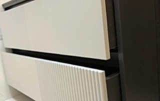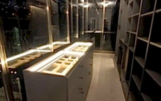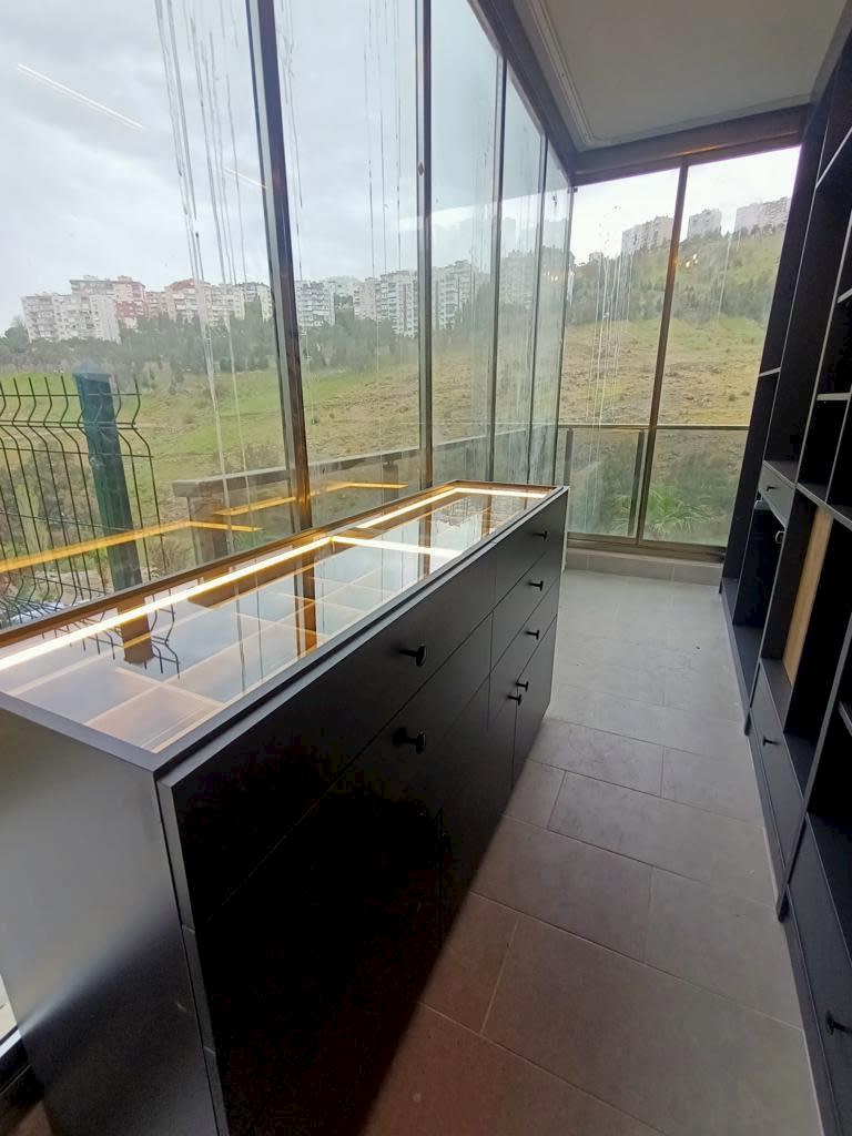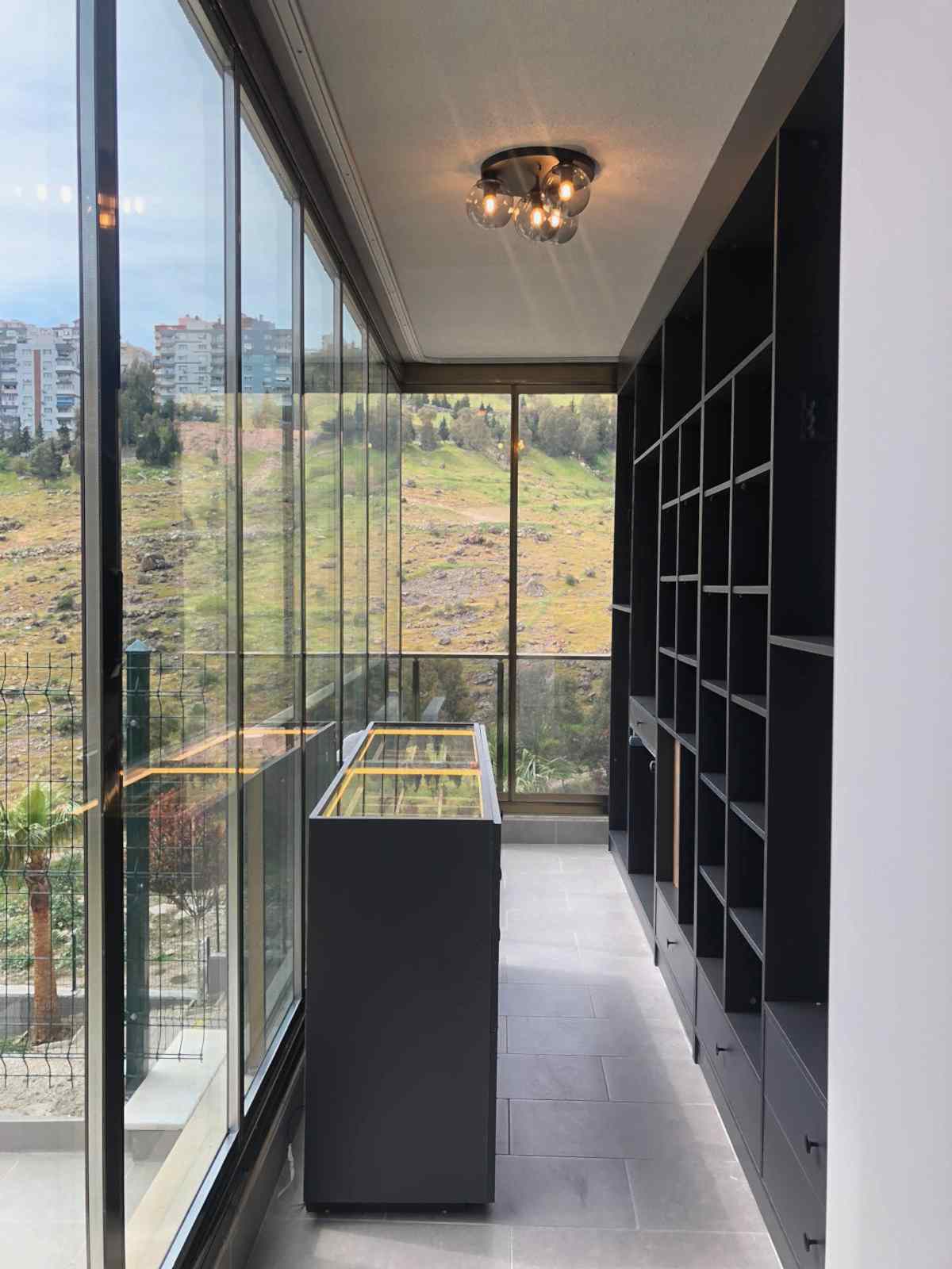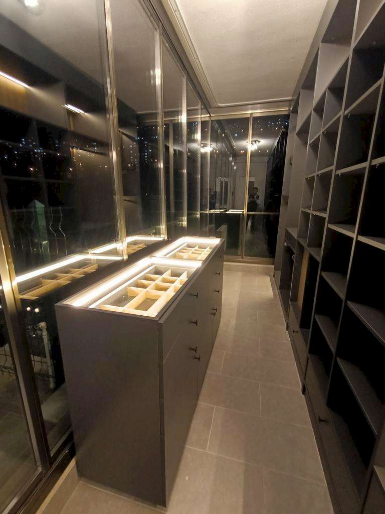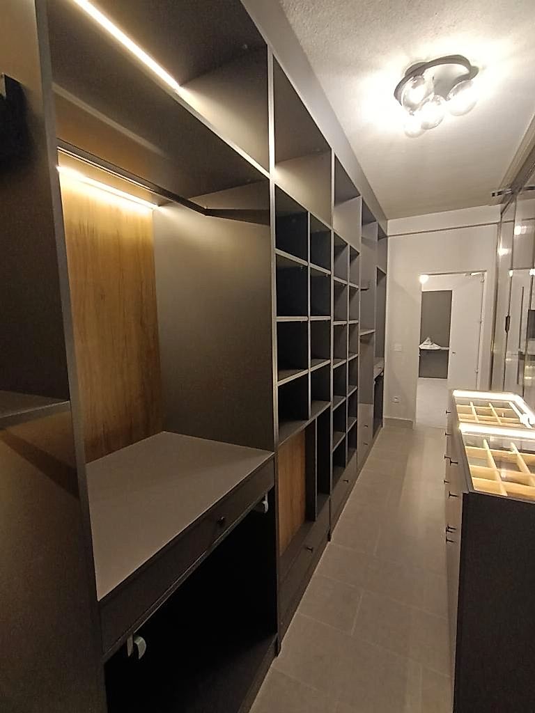 Giyinme odasında, tamamen müşterinin ihtiyaçlarına yönelik bir tasarım anlayışı benimsendi. Dolapların iç hacim tasarımı ve bölümlendirmesi, işlevsellik ve düzen sağlayacak şekilde yapıldı. Böylece giyinme odası, hem estetik hem de pratik açıdan mükemmel bir depolama alanına dönüştü.