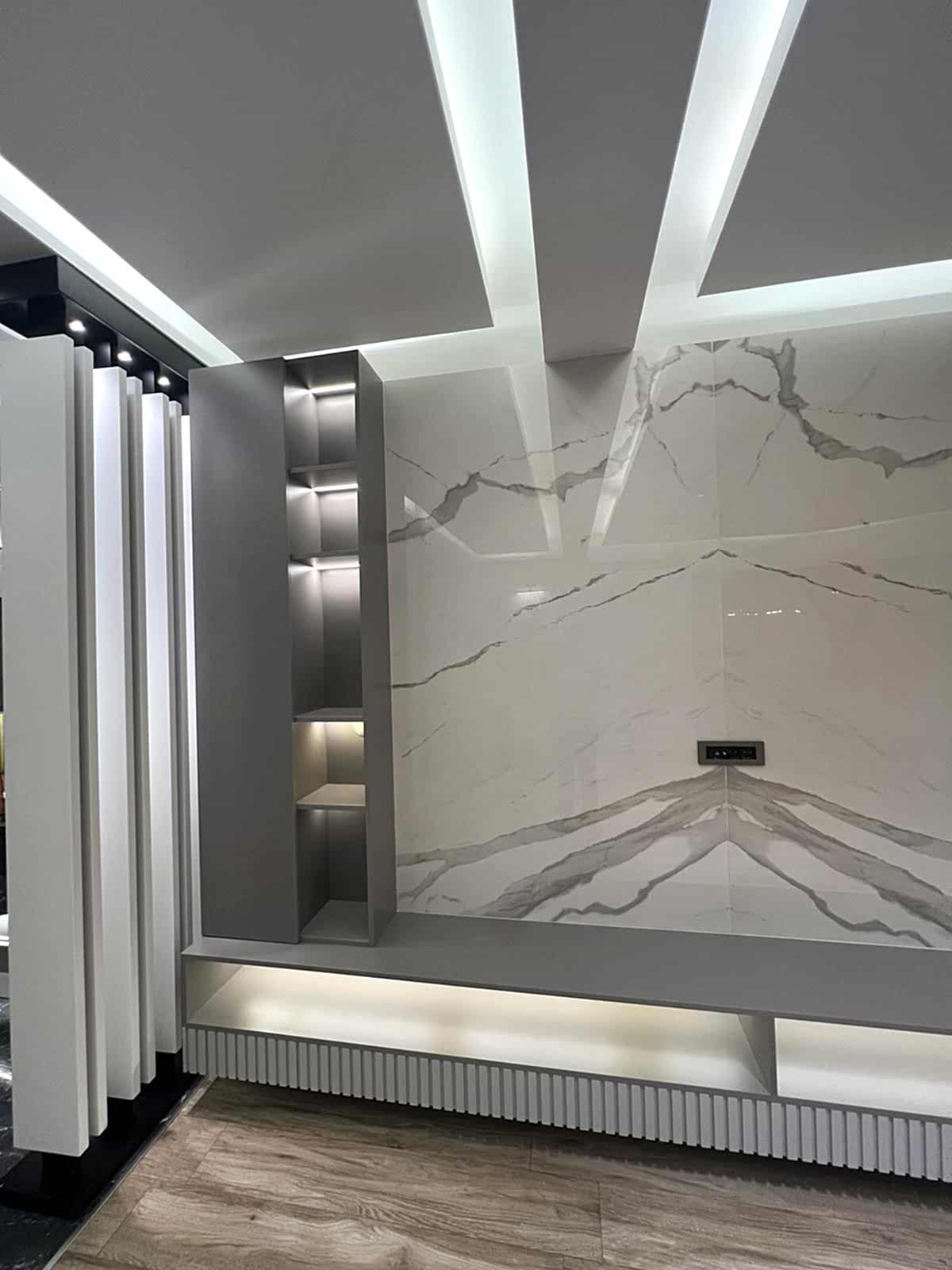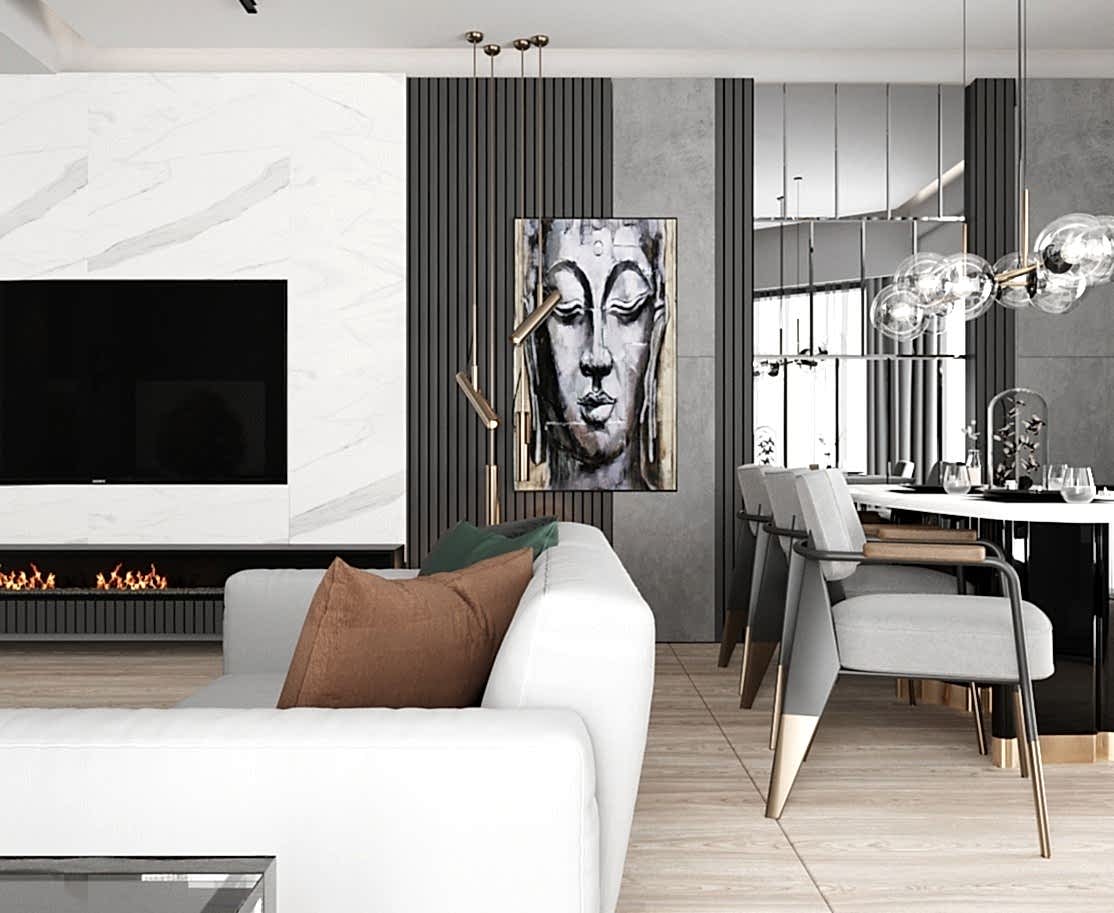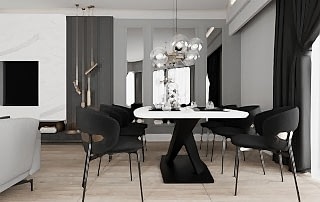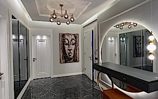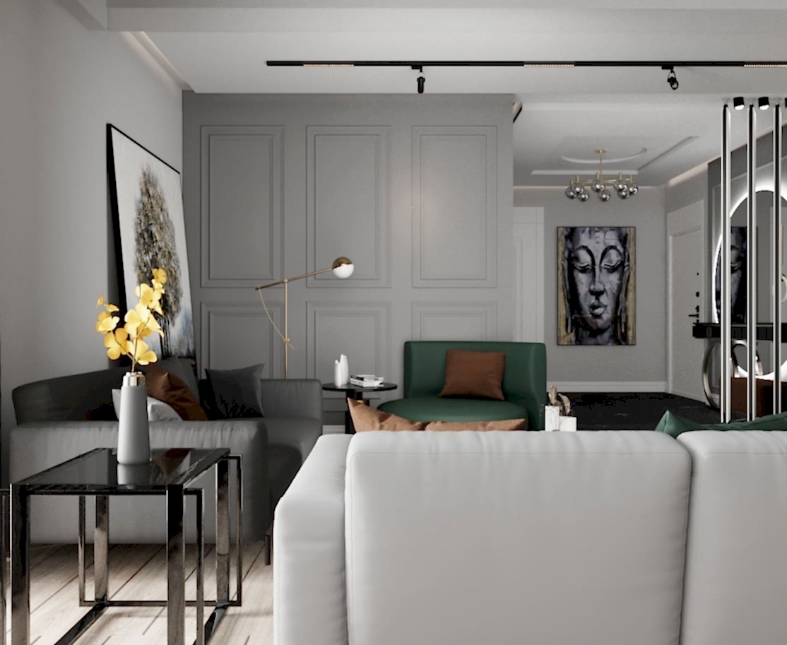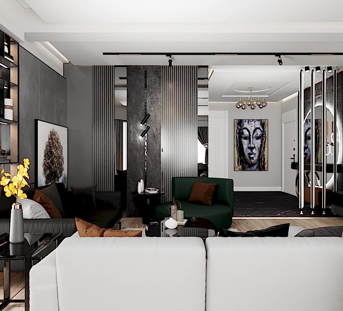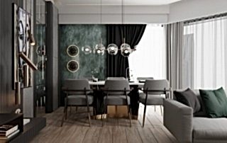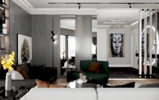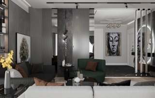 Çiğli Sirius Projesi, modern tasarım anlayışını fonksiyonellik ve şıklıkla birleştirerek zarif bir yaşam alanı sunuyor. Projede yer alan giriş ve salon tasarımı, kullanılan estetik detaylarla mekânları hem işlevsel hem de görsel açıdan etkileyici hale getiriyor. Giriş alanının hacmi büyük olduğu için tasarım açısından oldukça elverişli bir alan yaratılmış ve her detay özenle düşünülerek projeye dahil edilmiştir.